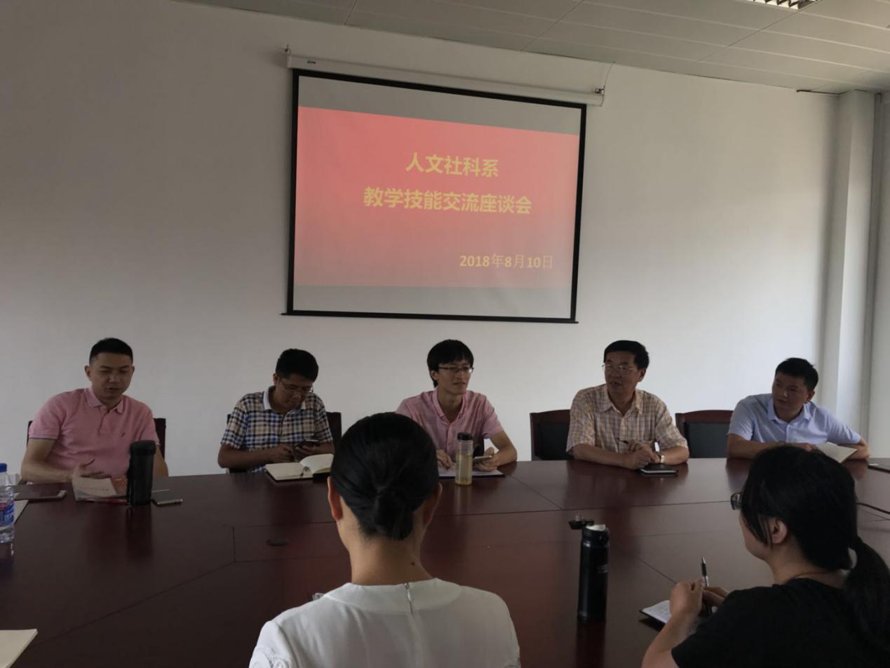 8月10日,为提升本科办学水平,提高教师们的教学技能,人文社科系响应学校及学院的号召,在文科楼501会议室召集所有教师开展了教学技能座谈会。童正容老师主持会议,并对当前教师上课存在的主要问题作了总结:第一,教师备课不认真;第二,课堂气氛差;第三,学生对课程知识的吸收差。之后介绍了分享教学经验的艾良友、谢履羽、李双荣三位老师,由此拉开会议帷幕。