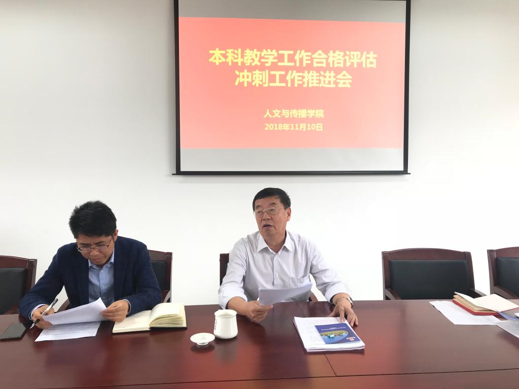 11月10日上午,人文与传播学院在文科楼501召开本科教学合格评估工作推进会,院长郗永勤教授、副院长张其春教授参加会议,党总支书记张斌老师主持会议,学院全体教职工出席会议。