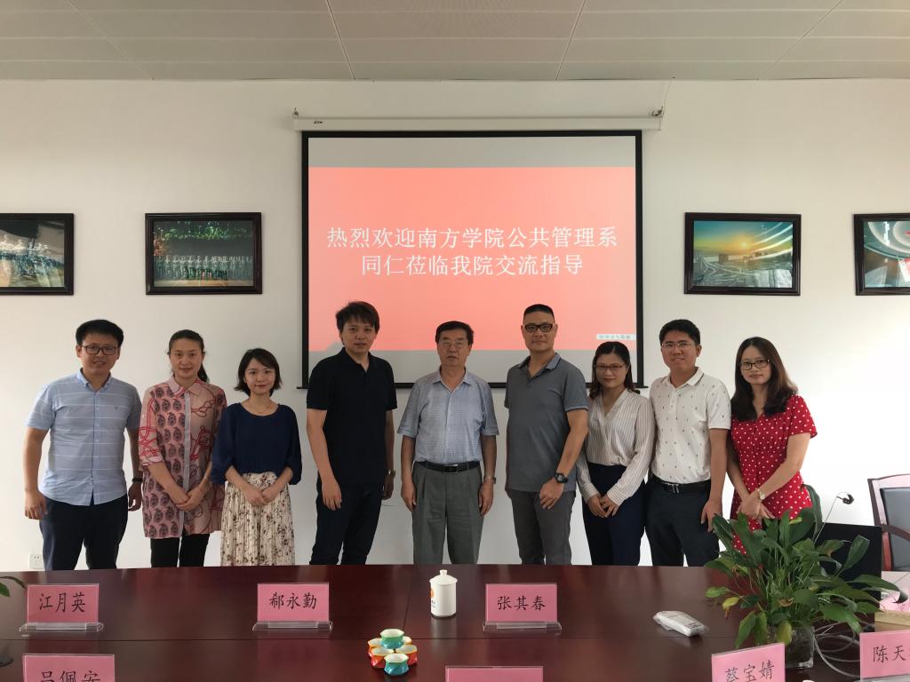 7月2日上午,中山大学南方学院公共管理学系陈天祥系主任协吕佩安、周先捷、蔡宝婧、潘晓蝶等一行五位老师莅临我院考察交流,我院郗永勤院长、张其春副院长、张斌书记、江月英老师、童正容老师一同接待,并在文501会议室举行了座谈交流会。