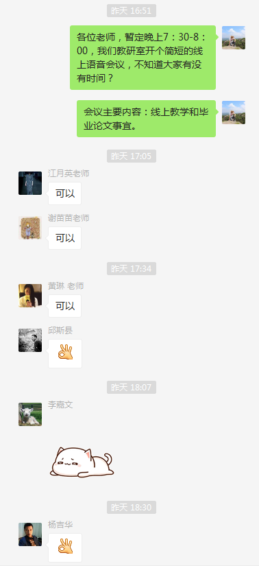 最后,教研室老师还针对2020届毕业生的毕业论文撰写情况做了交流和分享,相互借鉴线上指导方式方法,决定成立论文指导小组,强化对学生的指导,确保学生如期保质完成毕业论文。