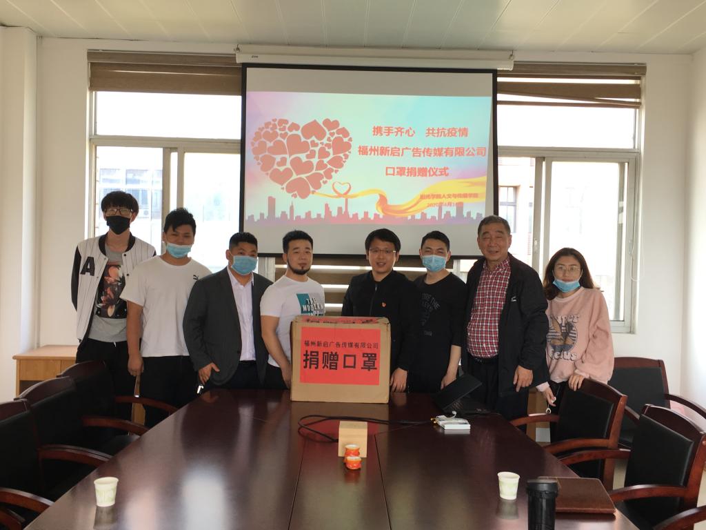 公司卢裔楷总经理表示,得知阳光学院即将复学,希望贡献他们的绵薄之力,为学院防控工作添砖加瓦,将每一份防护与保障带给老师与学生。也希望借此机会,与学院建立友好的校企合作机会。福州新启广告传媒有限公司以规范化的企业运营模式专注于新媒体运营、活动策划、企业年会、VI设计、展厅建设、户外广告、智能 安防等一站式服务,其服务范围与我院各个专业都有着紧密的联系。