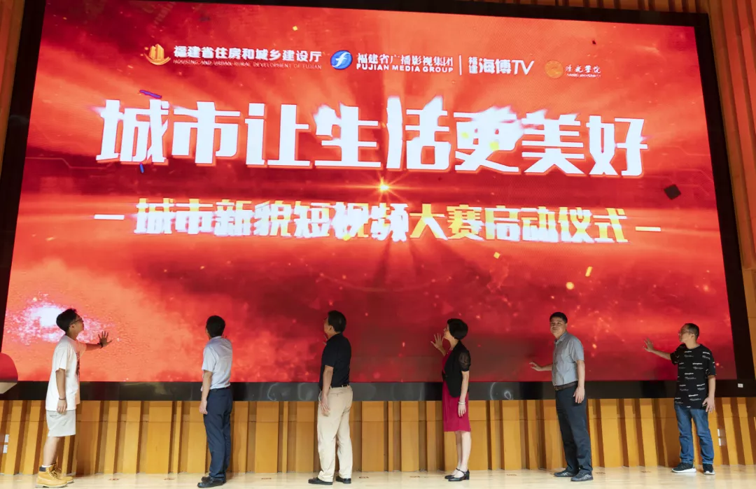 由领导和学生代表上台触摸大屏幕。随着大屏幕上的数字倒计时,“城市新貌”短视频正式启动。城市让生活更美好,深入城市记录新貌,感受我们城市的发展。通过短视频,将城市的优雅端庄呈现给我们。此次启动仪式为契机。宣传我省推动城乡建设品质提升的成效和作为。