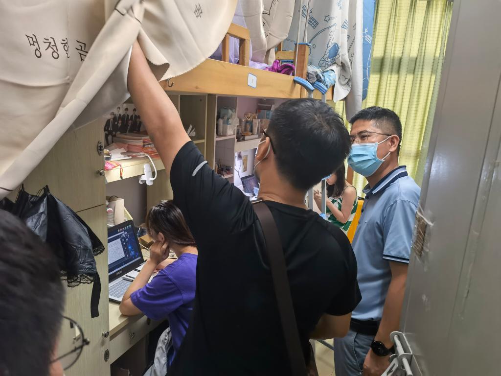 在走访宿舍过程中,张其春院长与张斌书记仔细地询问了同学们对环境、住宿、饮食等的适应情况,在了解新生的专业、家乡、兴趣等信息的同时,还细心查看了同学们的住宿环境,查看宿舍的设施是否完善,要求梳理、排查新生宿舍存在的问题或不足,发现一处,立即整改一处,与新生们交谈,了解不足,收集学生的反馈意见。