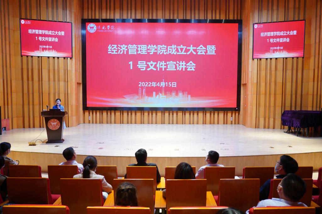 为进一步优化学校专业结构,整合优质教学科研资源,实现学校科学、快速发展,2022年4月15日下午,我校在行政楼音乐厅召开阳光学院经济管理学院成立大会,校领导、人力资源处负责人及新学院教师出席了会议。