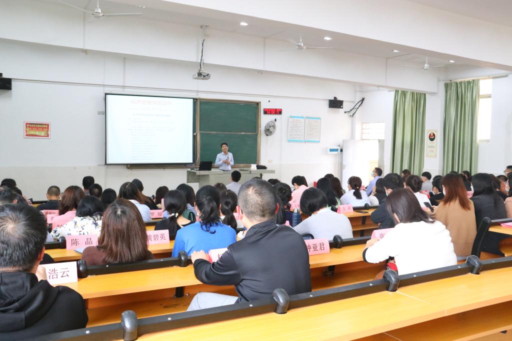 党总支书记林辉宗教授提出学院“十大行动” ,发展新商科应用型人才培养行动,提高学科建设水平、教师教学科研能力,培养大学生实践创新能力。刘正桥副院长围绕制度建设说明根据学校的文件精神,修改完善科研奖励制度,组织推进各级纵向科研项目申报和鼓励教师发表科研论文,将高水平科研论文实行逆向分配。