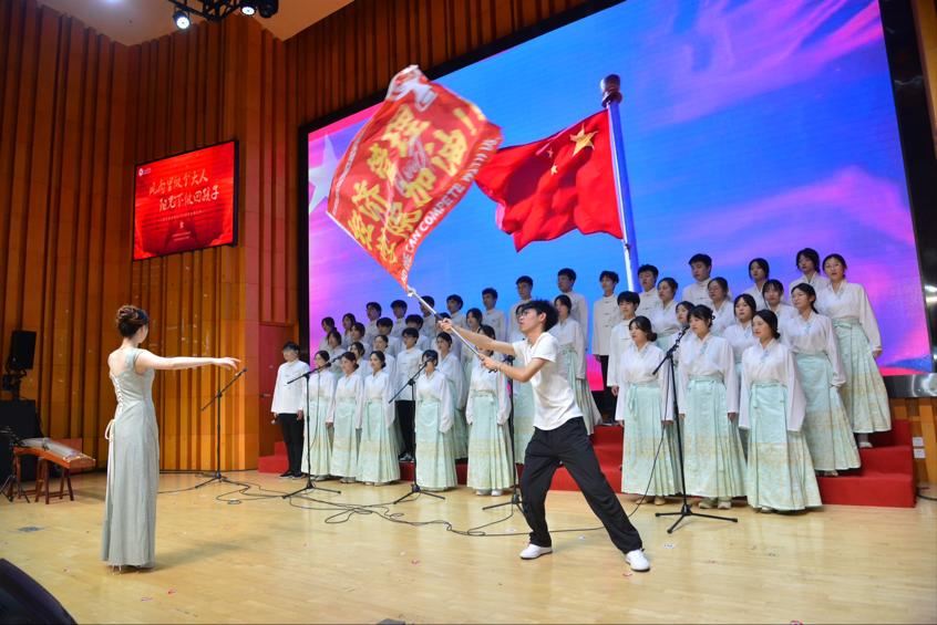 2024年6月19日在阳光学院“风雨里做个大人,阳光下做回孩子”纪念五四运动105周年合唱比赛。经济管理学院合唱团以两首大合唱“再一次出发”和“上春山”的出色表现,最终优胜荣获第一名,展现了学院学子青春风采和爱国情怀。