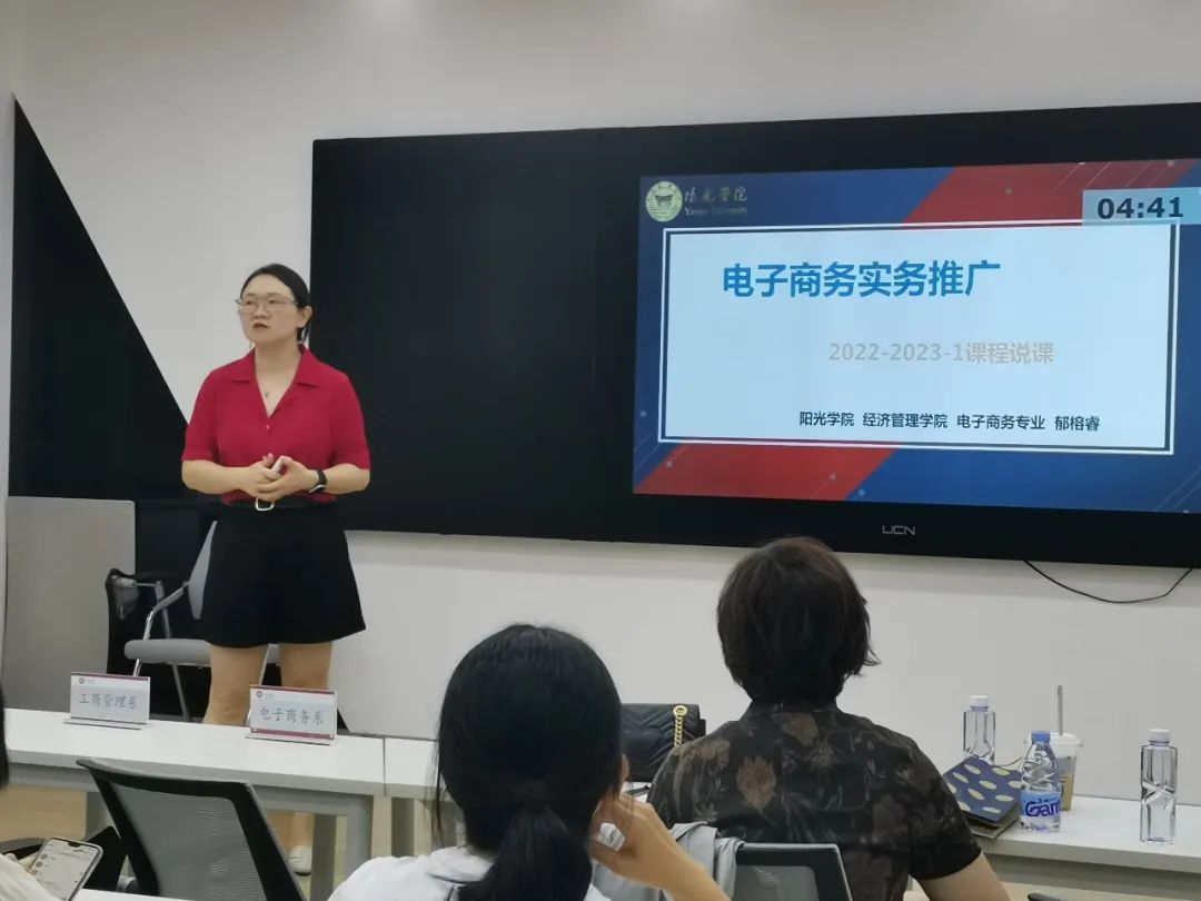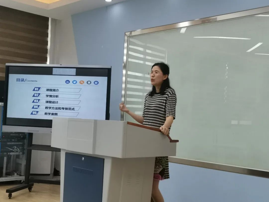 主持人介绍结束后,活动首先开展的是教师示范说课,负责说课示范的教师分别为:吴容容老师、朱莉莉老师、郁榕睿老师、杨淑惠老师。以上教师的精彩示范说课展示,为后续各系专业课教师教研活动作出良好的示范作用。