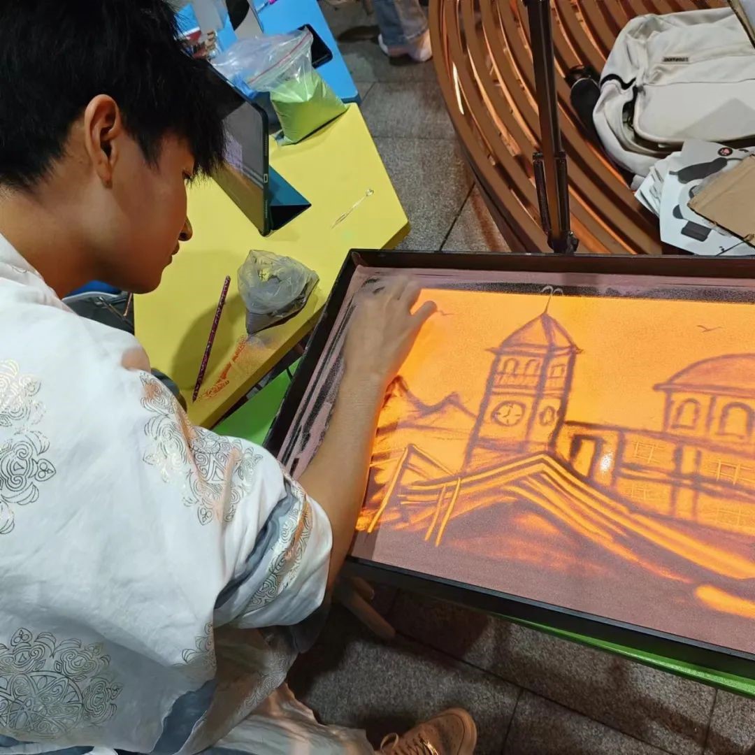 “我所遇到的老师都很好!校团委、学院都非常支持和鼓励学生个人创作,所以,我的沙画事业从‘0’到‘1’到‘n+1’的过程,走得又快又稳。”