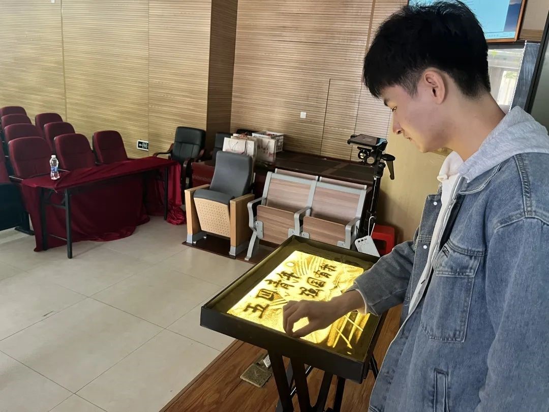 “我常常想,沙子那么渺小,是怎么画出这些灵动的画呢。”黄志伟将自己热爱的沙画艺术带进阳光学院,逐渐在这里找到了自己的热爱与坚持。